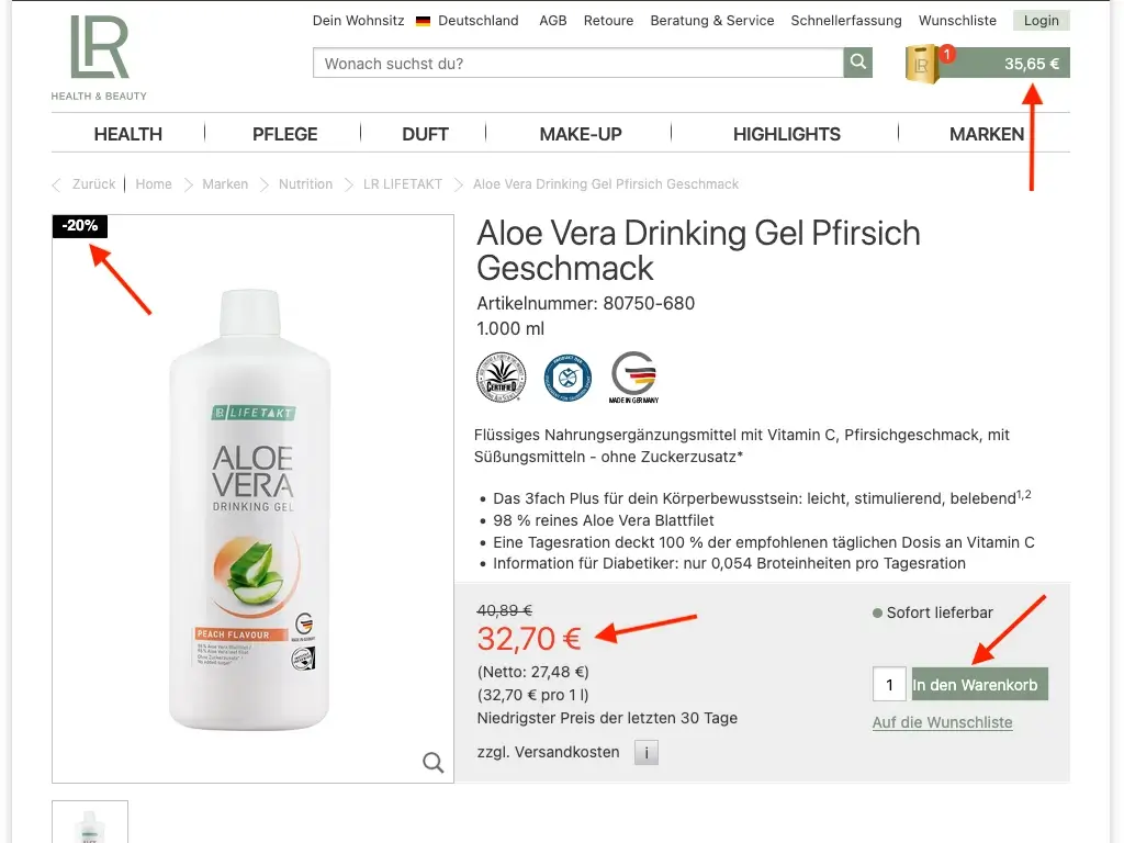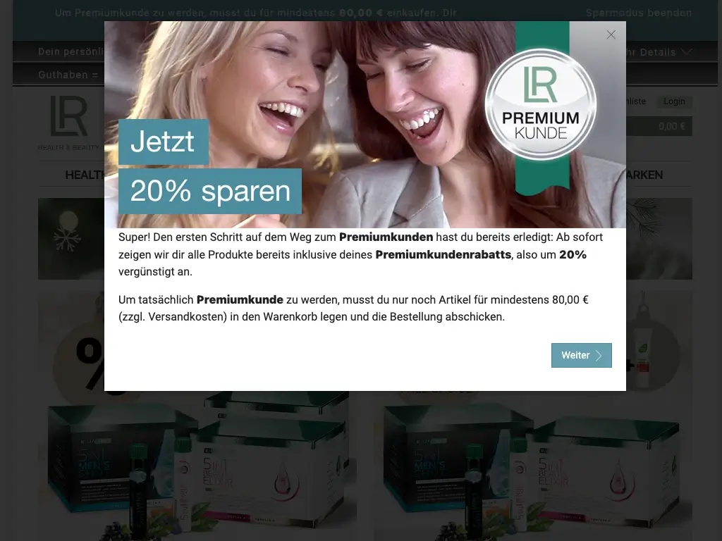 Als LR-Premiumkunde sicherst du dir dauerhaft 20 % Preisvorteil auf viele Produkte. Du bestellst für dich und deine Familie zu besseren Konditionen – ohne Druck und ohne Laufzeit. Nach der einmaligen Erstbestellung entscheidest du frei, wann und was du brauchst.