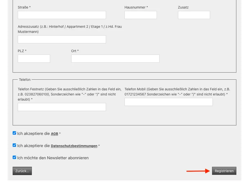 ✔ Die Registrierung erfolgt direkt im Bestellprozess und wird abgeschlossen